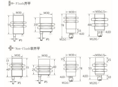Thread size / 螺紋尺寸: M30屏蔽式 / M30非屏蔽式