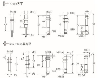 Thread size / 螺紋尺寸: M8屏蔽式 / M8非屏蔽式